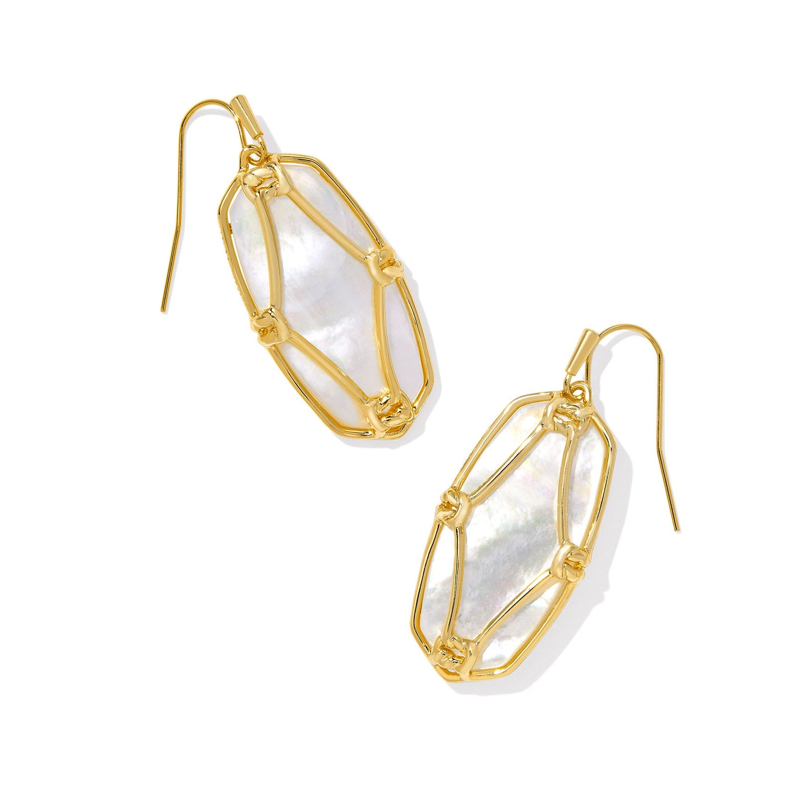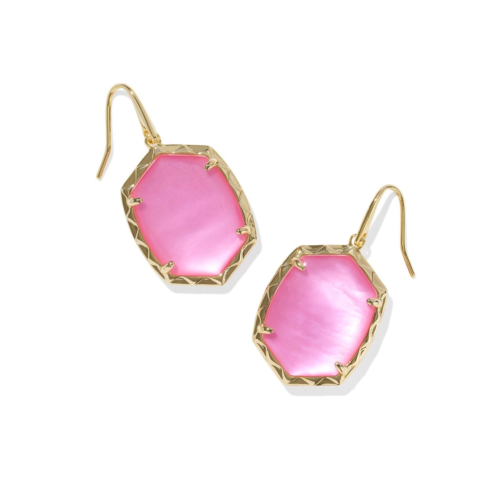 ABBIE DROP GOLD EARRINGS in rose quartz