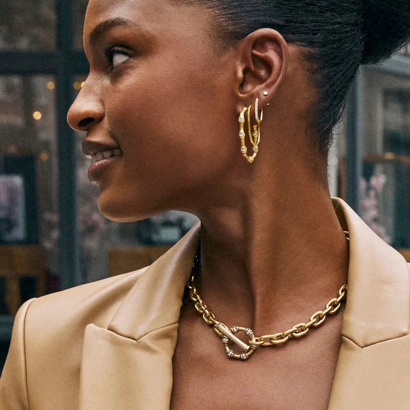MAURA VINTAGE GOLD CHAIN NECKLACE in white crystal