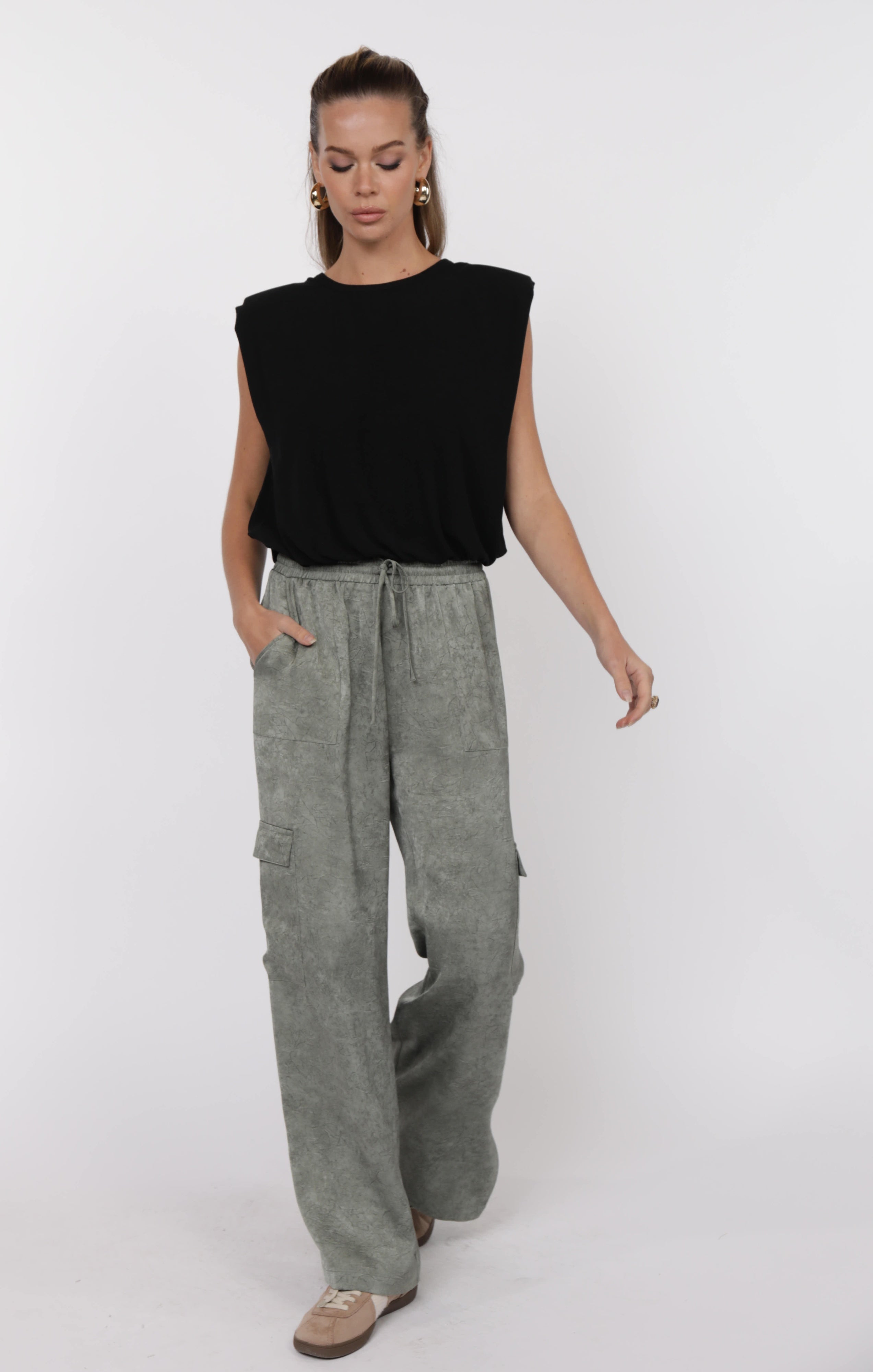 FOREVER YOURS CRINKLED SATIN CARGO PANTS