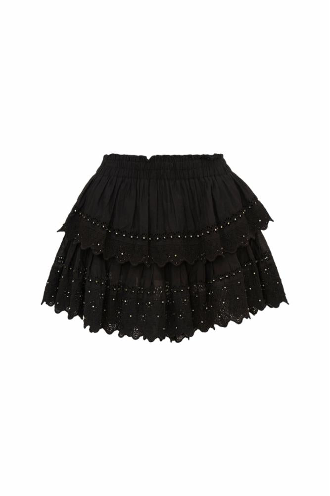 RHINESTONE RUFFLE MINI SKIRT